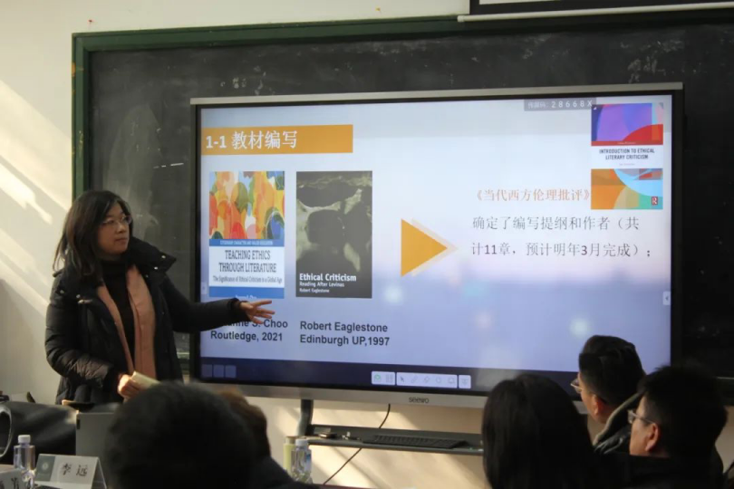 颜芳老师汇报了《当代西方文学批评》课程建设情况,包括课程资料完善、知识图谱奠基和课堂微型学术研讨会。下一步,颜芳老师将继续完善知识点相关的微视频和知识图谱,强化批评维度;在马克思主义文学批评数据库方面,突出华大学派,设置中英双语,搭建国际重要的马克思主义平台,推进数据库AI化;在课程视频中推进中英双语的字幕,实现国际化学术推广。