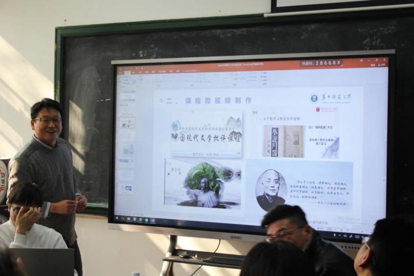 王海龙老师汇报了目前的课程资源建设情况——完成了12个微课视频,并根据马工程的《马克思主义文艺理论》教材修改配套PPT。为了加强中西部高校合作与交流,明年将邀请中西部学者参与评审学生作业,让中西部高校的学生进行分组展示,提供中西部学生互动学习机会。