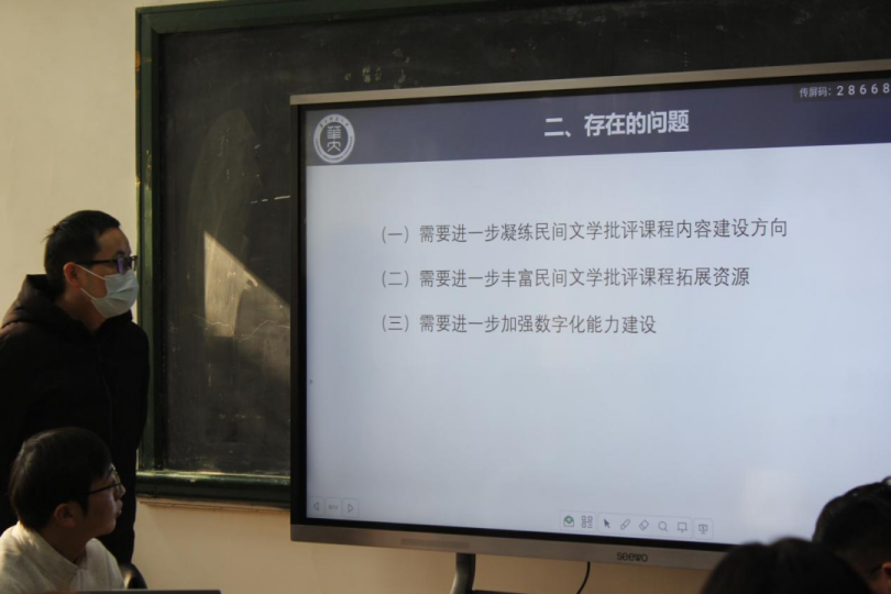 熊威老师在张静老师分享的基础上进行了问题补充。他指出,民间文学的外在拓展过程中研究方向松散,后期需要进一步探究课程内容的建设方向。此外,当下课程资源拓展仅限于PPT和微视频,类型较为单一,有待进一步丰富。