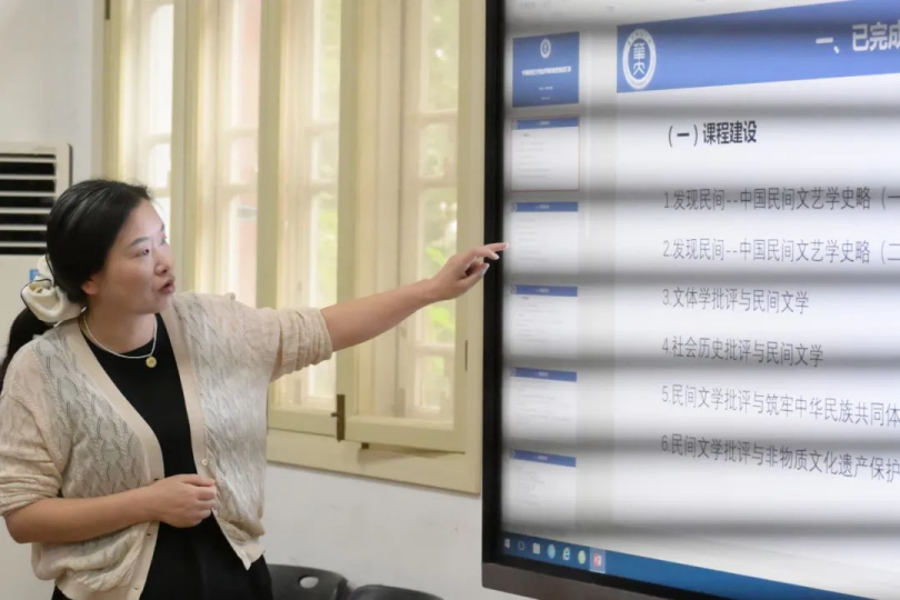 张静老师汇报了“中国民间文学批评”课程的建设情况。在2023年工作的基础上,该课程目前稳步推进课程打造、资源建设、民间文学经典阐释与批评工作坊三项工作,目前已完成陈建宪《红军歌谣与民间文艺》的讲座实录。张静老师同时汇报了年度计划,重点是工作坊的完善提质,包括“与传承人面对面”与“数字时代民间文学的教与学”两个主题。