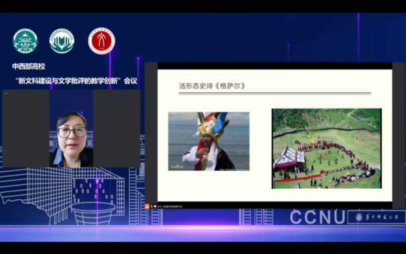 马都尕吉副教授在题为《新文科背景下高校《民间文学》课程的教学实践与反思——以青海师范大学为例》的报告中介绍了青海师范大学《民间文学》课程基本概况,包括内容简介,教学方式,课程目标和使用教材。马都尕吉副教授特别强调推荐使用华中师范大学主编的《民间文学》教材,认为该教材从中华文化多元一体的格局出发,重视多民族特别是少数民族对中国民间文学的贡献;在重视吸取本学科国际成果的同时,着力突现中国现代民间文艺学特别是八九十年代的新成就;以现代文化的宽广视野审视本学科的基础知识、基本理论,使它具有现代人文学科的品格。马都尕吉副教授还对新文科建设背景下的教学反思进行了陈述,总结经验,认为应当做到课堂与田野双向融合,教学内容中的学科交叉融合,教学方法上信息技术与学科教学的深度融合,教学过程中新时代人文精神的彰显与养成以及教研相长的实践中教学水平的提升,并且以“风搅雪”花儿和活形态史诗《格萨尔》为例,进行具体说明。