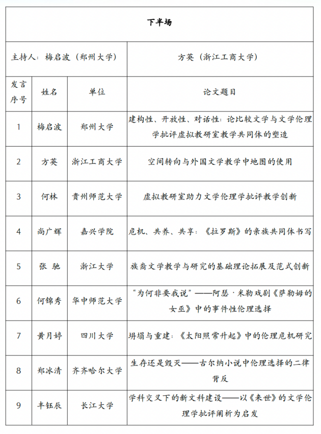 本次会议既注重实现学科领域内的学术创新,又注重加强学科之间的知识互通,所以,在此理念基础上共设立八个分议题,即文学批评教学创新专题研究、马克思主义文学批评教学创新研究、文学伦理学批评教学创新研究、中国近现代文学批评教学创新研究、中国当代文学批评教学创新研究、当代西方文学批评教学创新研究、新媒介文艺批评教学创新研究、民间文学批评教学创新研究。